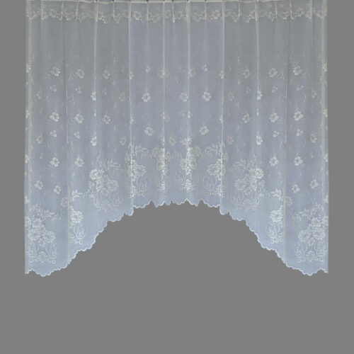 Hele, natural-valge lillemustriline kaarega pitskardin