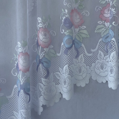 Kaarega pitskardin: Valgel põhjal värvilised roosid