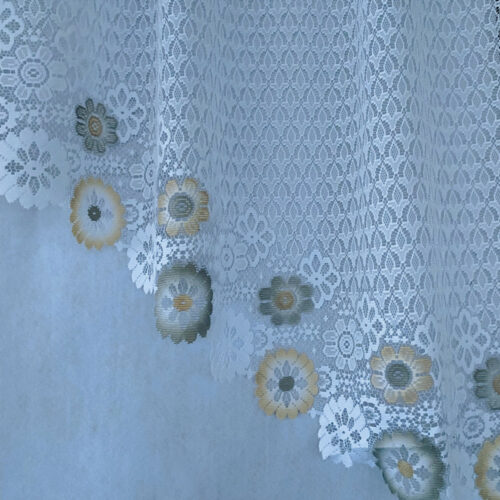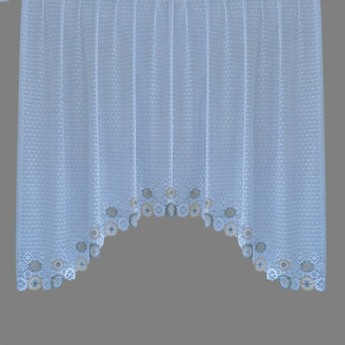 Kaarega pitskardin: Valgel põhjal sinised lilled+kollane süda.