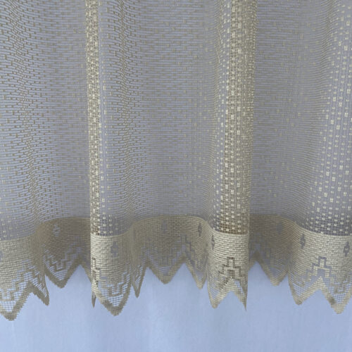 Võrgulise koega päevakardina kangas: kõrgus 225-270cm, värv: hele-kuldne hale kollane.