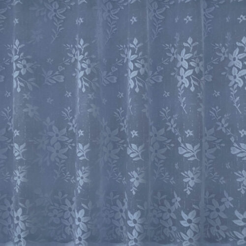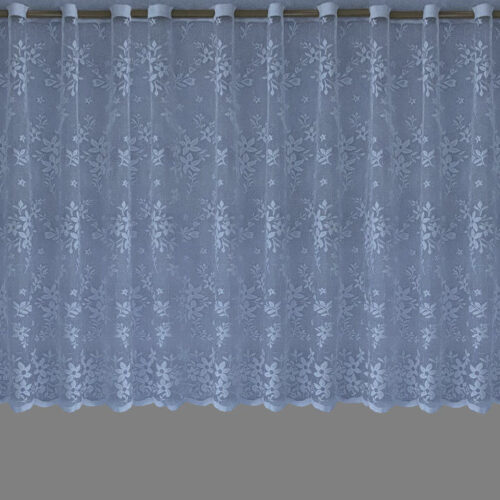 Valgust läbilaskev, valge, lillemuster(õrnalt sädelev), lainelise alläärega pitskardin, kõrgus-55cm. Kuna kangal on juba üleval ääres augud siis sobib kardin kitsale kardinapuule või kardinasiinile. TOOTE KOOD: TK100-250 kõrgus: 55cm, laius: 250cm Hind: 9,90 TK100-300 kõrgus: 55cm, laius: 300cm Hind: 11,50 TK100-350 kõrgus: 55cm, laius: 350cm Hind: 12,90 TK100-400 kõrgus: 55cm, laius: 400cm Hind: 13,90 TK100-450 kõrgus: 55cm, laius: 450cm Hind: 15,90 TK100-500 kõrgus: 55cm, laius: 500cm Hind: 17,50 TK100-550 kõrgus: 55cm, laius: 550cm Hind: 19,50, Hooldus: